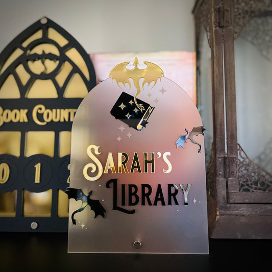 Personalised Dragon Library Sign | Fantasy-Inspired Bookshelf Decor